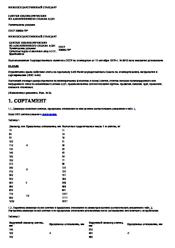 Наша цель состоит в том, чтобы предоставить вам быстрый доступ к содержанию документа Слитки цилиндрические из алюминиевого сплава АД31. Технические условия.