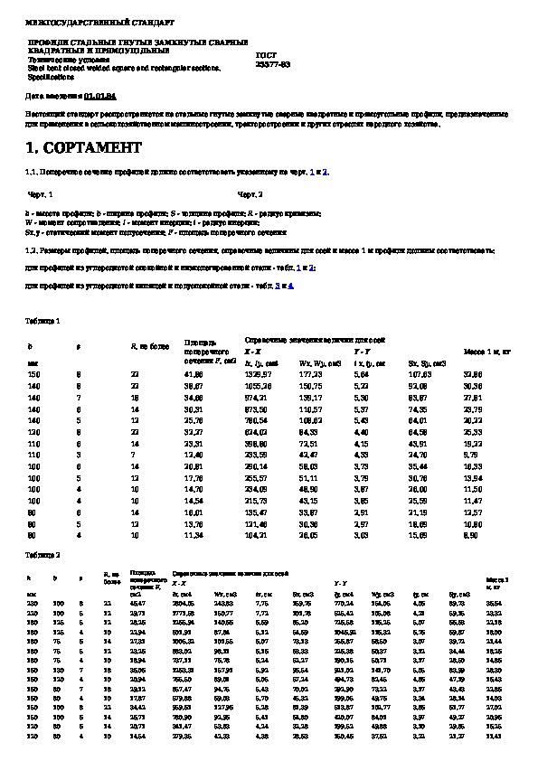 ГОСТ 25577-83: Профили стальные гнутые замкнутые сварные квадратные и прямоугольные. Технические условия
