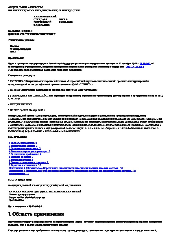 Наша цель состоит в том, чтобы предоставить вам быстрый доступ к содержанию документа Катанка медная для электротехнических целей. Технические условия.
