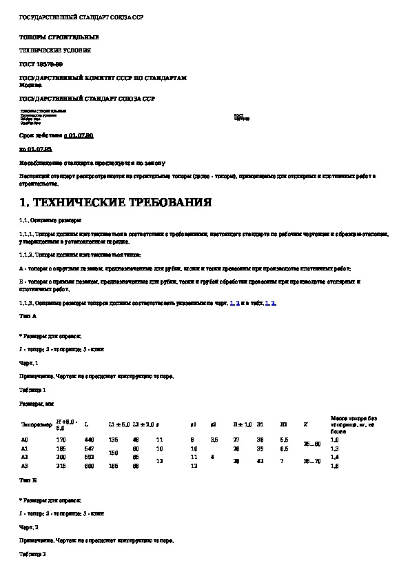 Наша цель состоит в том, чтобы предоставить вам быстрый доступ к содержанию документа Топоры строительные. Технические условия.