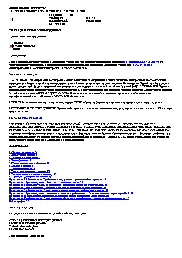 ГОСТ Р 51136-2008: Стекла защитные многослойные. Общие технические условия
