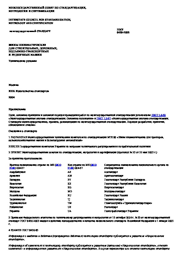 ГОСТ 8430-2003: Шины пневматические для строительных, дорожных, подъемно-транспортных и рудничных машин. Технические условия