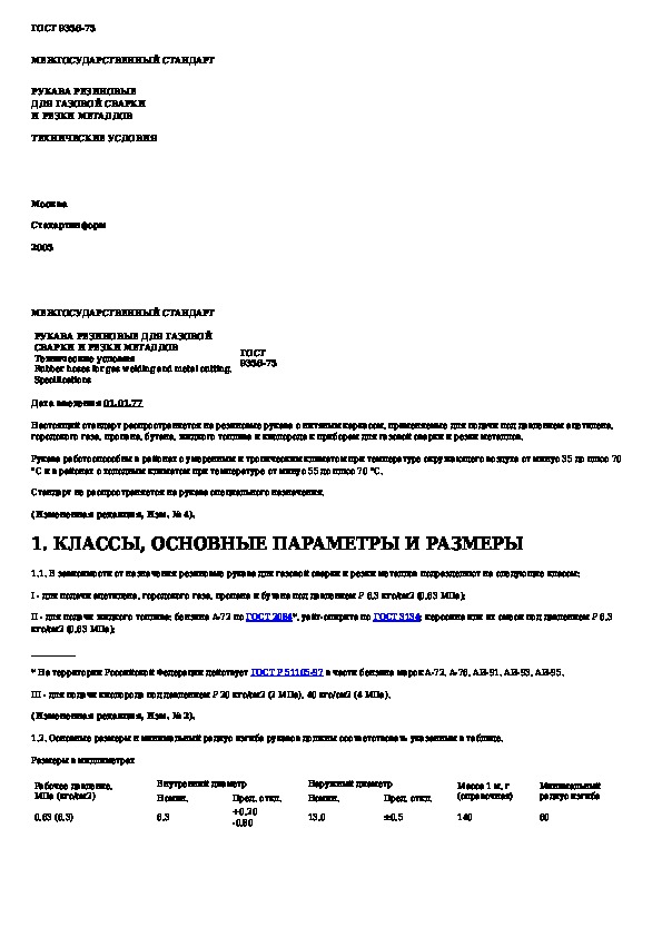 ГОСТ 9356-75: Рукава резиновые для газовой сварки и резки металлов. Технические условия