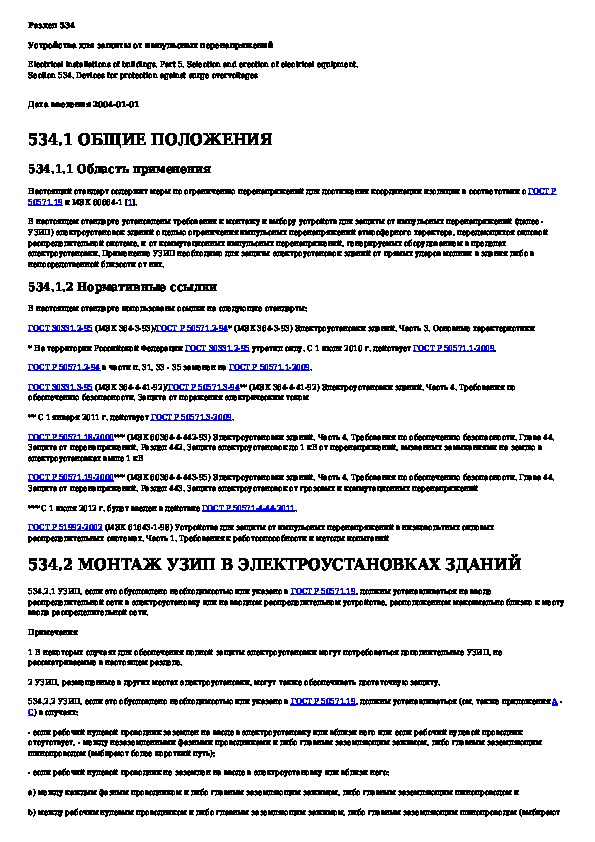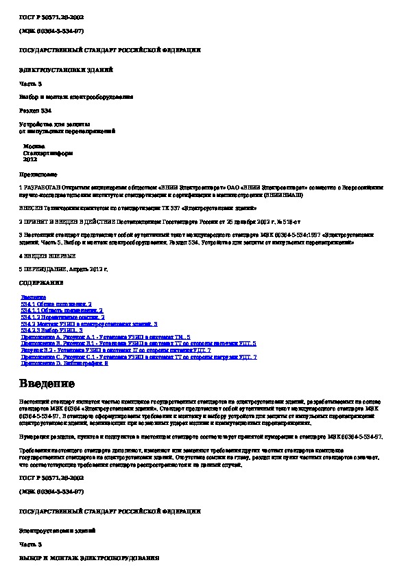 Наша цель состоит в том, чтобы предоставить вам быстрый доступ к содержанию документа Электроустановки зданий. Часть 5. Выбор и монтаж электрооборудования. Раздел 534. Устройство для защиты от импульсивных перенапряже.