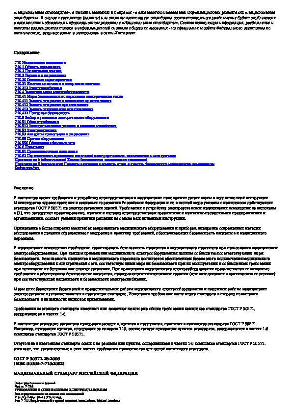 Наша цель состоит в том, чтобы предоставить вам быстрый доступ к содержанию документа Электроустановки зданий. Часть 7-710. Требования к специальным электроустановкам. Электроустановки медицинских помещений.