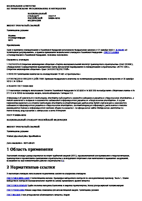 Наша цель состоит в том, чтобы предоставить вам быстрый доступ к содержанию документа Шпунт трубчатый сварной. Технические условия.