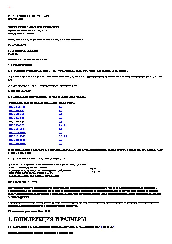 Наша цель состоит в том, чтобы предоставить вам быстрый доступ к содержанию документа Знаки сигнальные механические флажкового типа средств предупреждения. Конструкция, размеры и технические требования.
