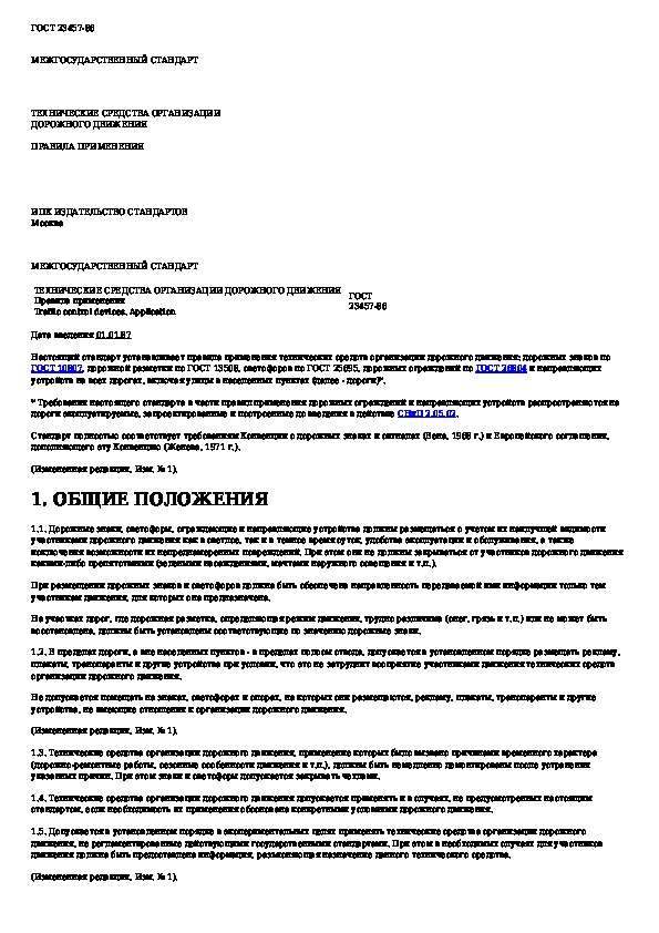 ГОСТ 23457-86: Технические средства организации дорожного движения. Правила применения