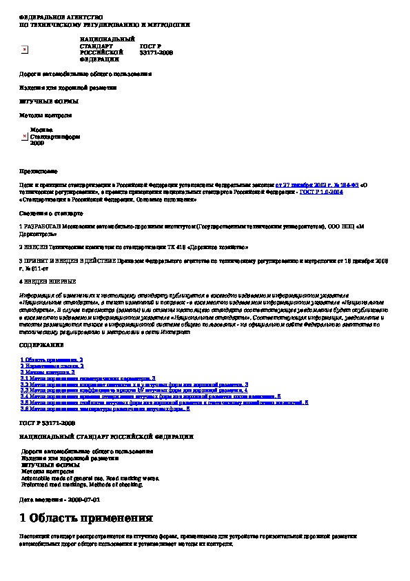 Наша цель состоит в том, чтобы предоставить вам быстрый доступ к содержанию документа Дороги автомобильные общего пользования. Изделия для дорожной разметки. Штучные формы. Методы контроля.