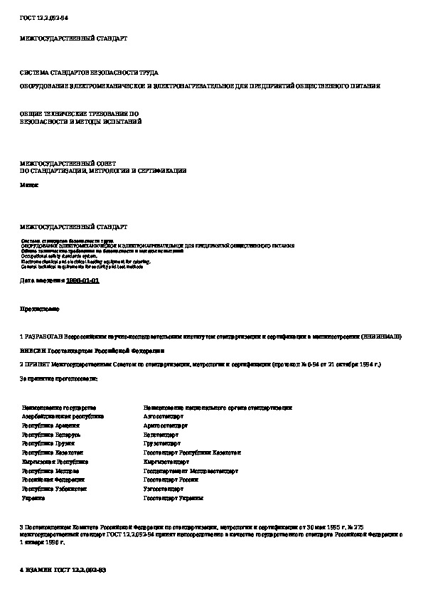 ГОСТ 12.2.092-94: Система стандартов безопасности труда. Оборудование электромеханическое и электронагревательное для предприятий общественного
