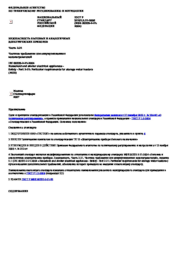 Наша цель состоит в том, чтобы предоставить вам быстрый доступ к содержанию документа Безопасность бытовых и аналогичных электрических приборов. Часть 2.21. Частные требования для аккумуляционных водонагревателей.