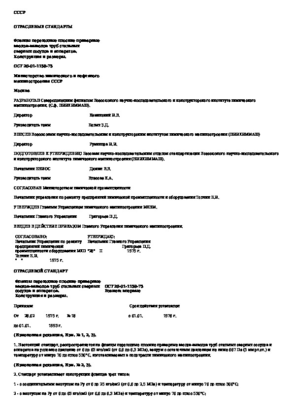 ОСТ 26-01-1158-75: Фланцы переходные плоские приварные вводов-выводов труб стальных сварных сосудов и аппаратов. Конструкция и размеры