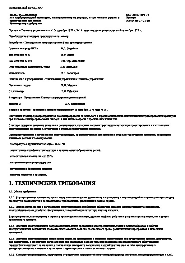 ОСТ 26-07-596-72: Электроприводы для трубопроводной арматуры, изготовляемые на экспорт, в том числе в страны с тропическим климатом. Технические тр