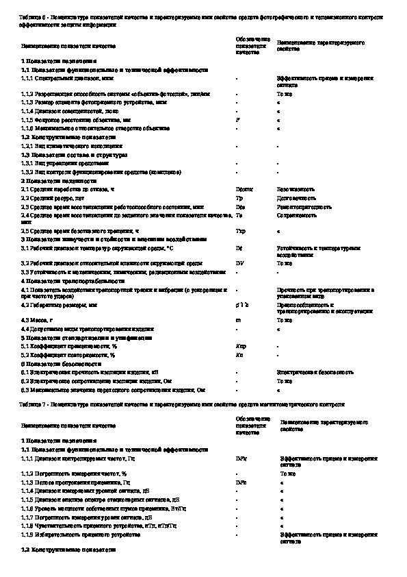 Защита информации. Техника защиты информации. Номенклатура показателей качества