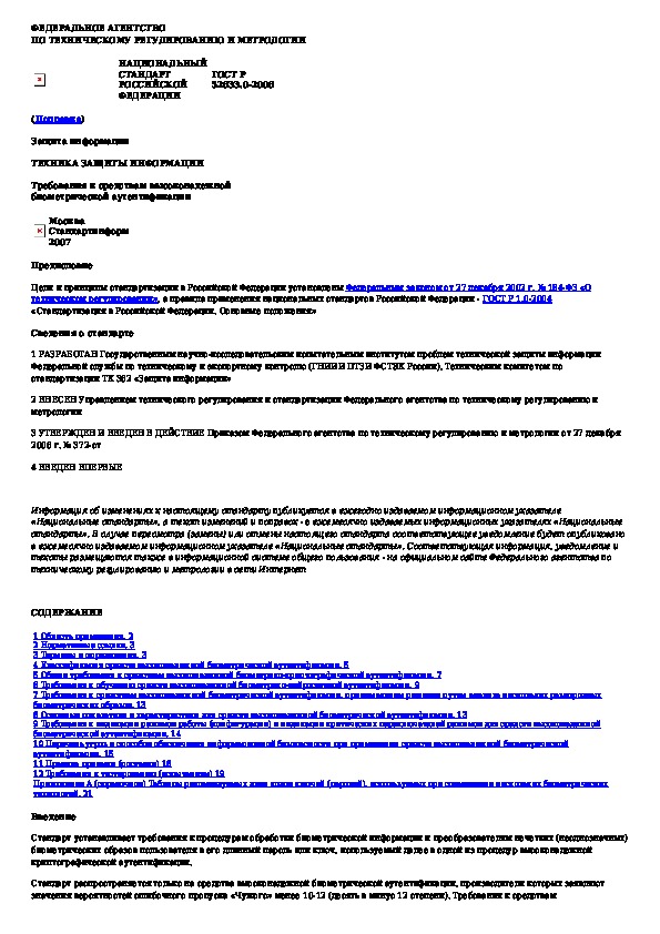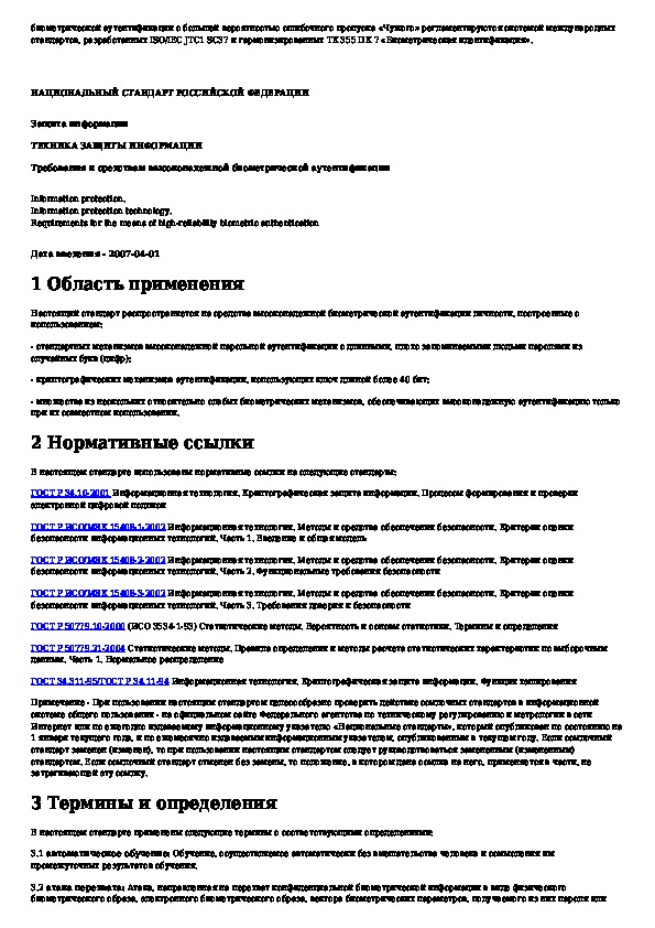 ГОСТ Р 52633.0-2006: Защита информации. Техника защиты информации. Требования к средствам высоконадежной биометрической аутентификации
