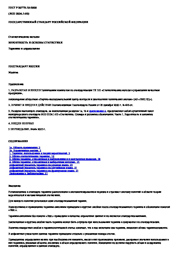 ГОСТ Р 50779.10-2000: Статистические методы. Вероятность и основы статистики. Термины и определения