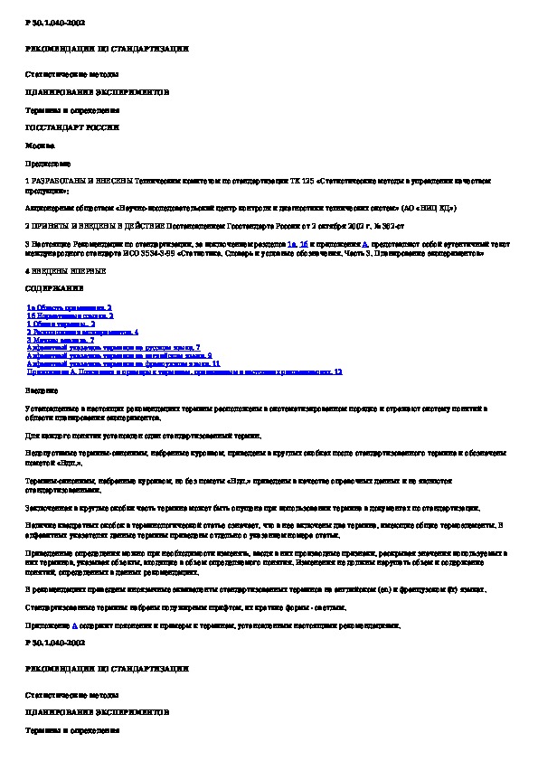 Наша цель состоит в том, чтобы предоставить вам быстрый доступ к содержанию документа Статистические методы. Планирование экспериментов. Термины и определения.