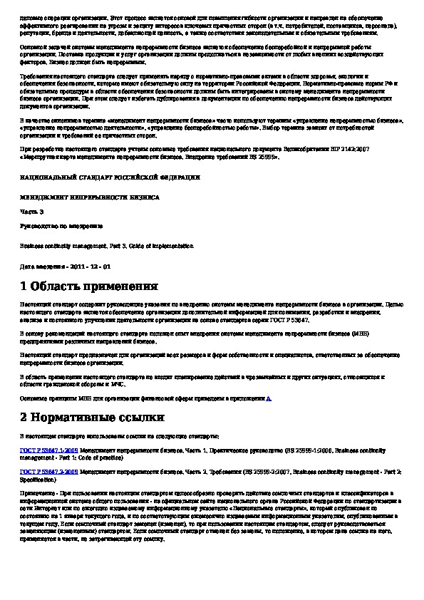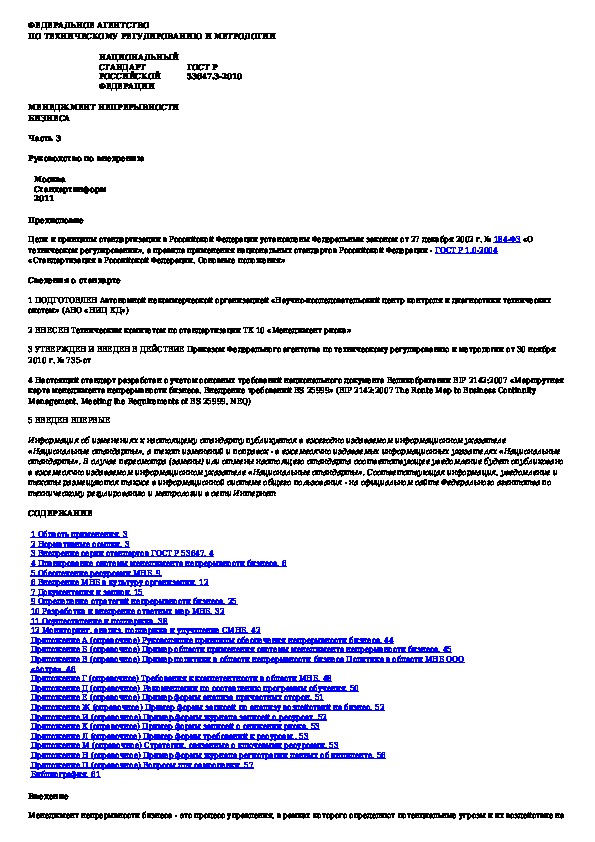 ГОСТ Р 53647.3-2010: Менеджмент непрерывности бизнеса. Часть 3. Руководство по внедрению