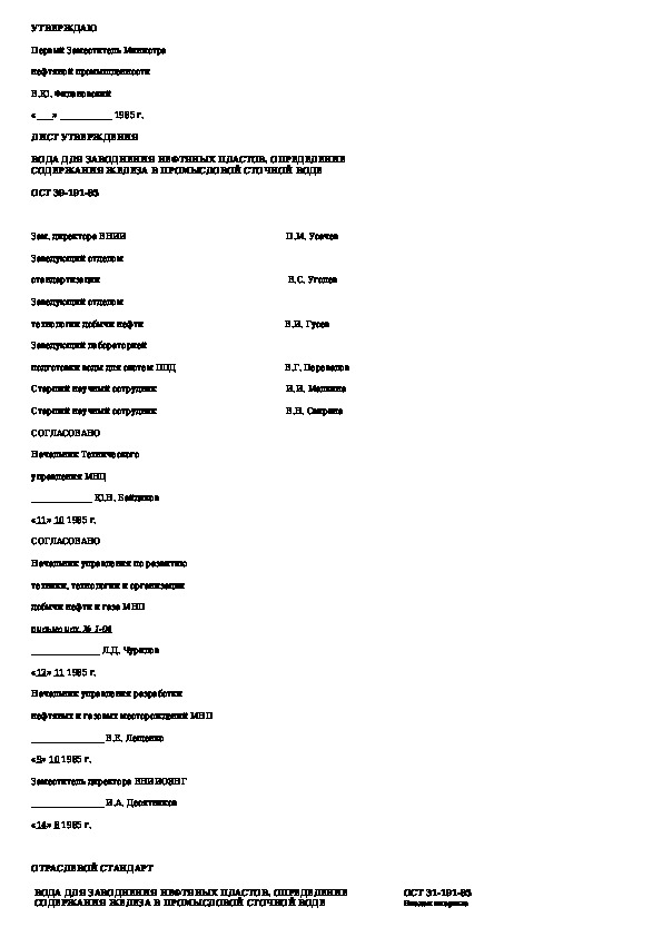 ОСТ 39-191-85: Вода для заводнения нефтяных пластов. Определение содержания железа в промысловой сточной воде
