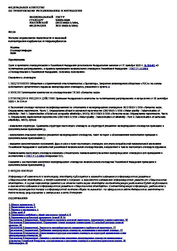 Наша цель состоит в том, чтобы предоставить вам быстрый доступ к содержанию документа Вода. Методы определения щелочности и массовой концентрации карбонатов и гидрокарбонатов.