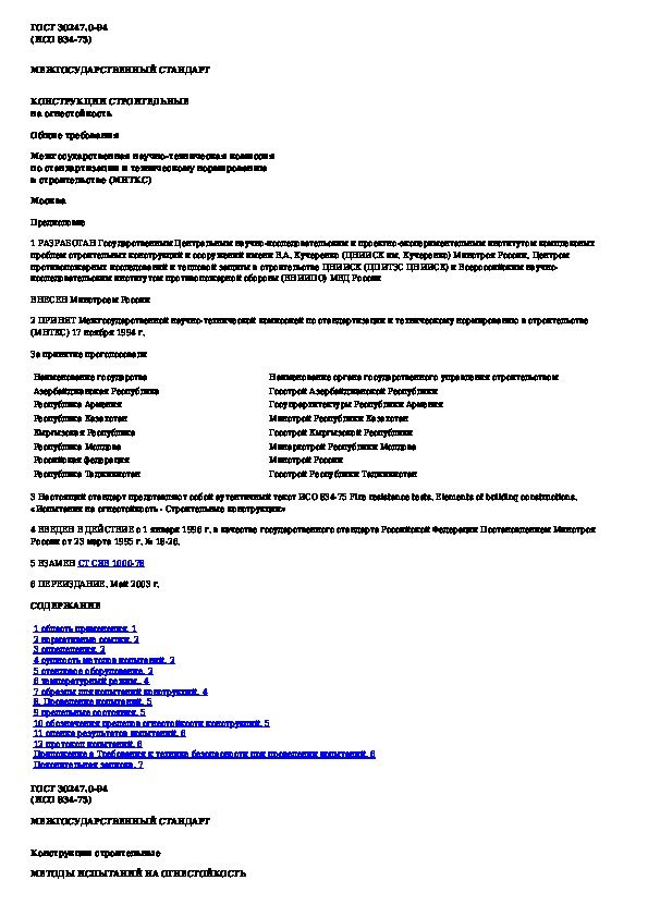 ГОСТ 30247.0-94: Конструкции строительные. Методы испытаний на огнестойкость. Общие требования