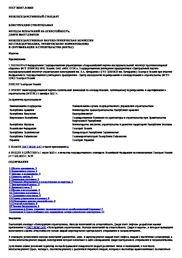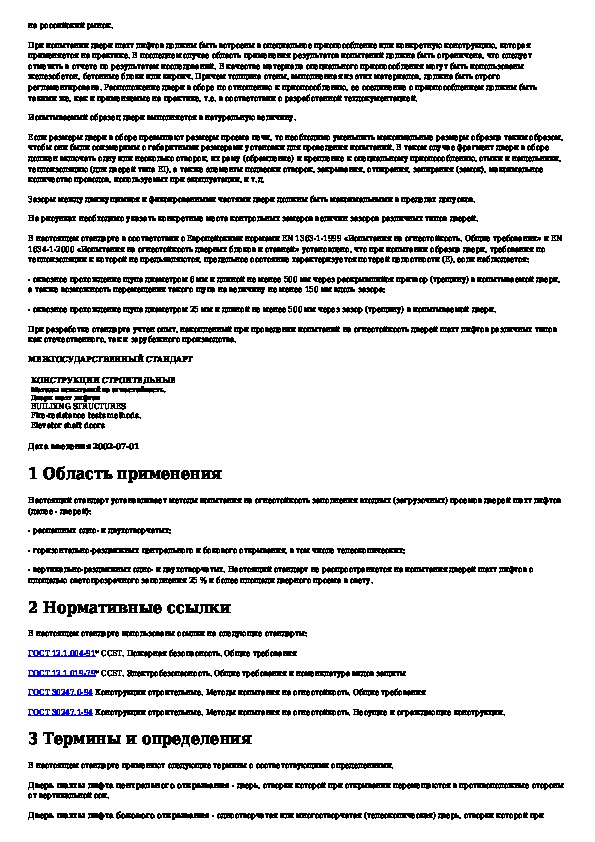 Наша цель состоит в том, чтобы предоставить вам быстрый доступ к содержанию документа Конструкции строительные. Методы испытаний на огнестойкость. Двери шахт лифтов.