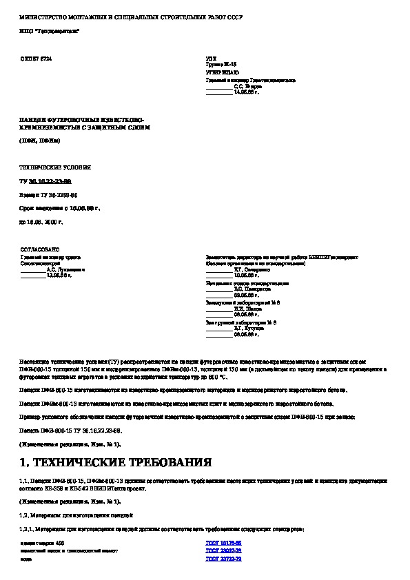 ТУ 36.16.22-23-88: Панели футеровочные известково-кремнеземистые с защитным слоем (ПФИ, ПФИм)