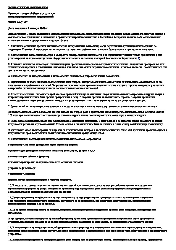 ВППБ 40-01-97: Правила пожарной безопасности для киновидеозрелищных предприятий