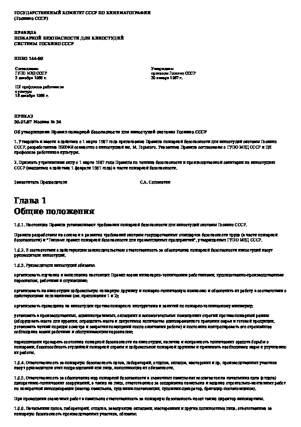 ППБО 144-86: Правила пожарной безопасности для киностудий системы Госкино СССР