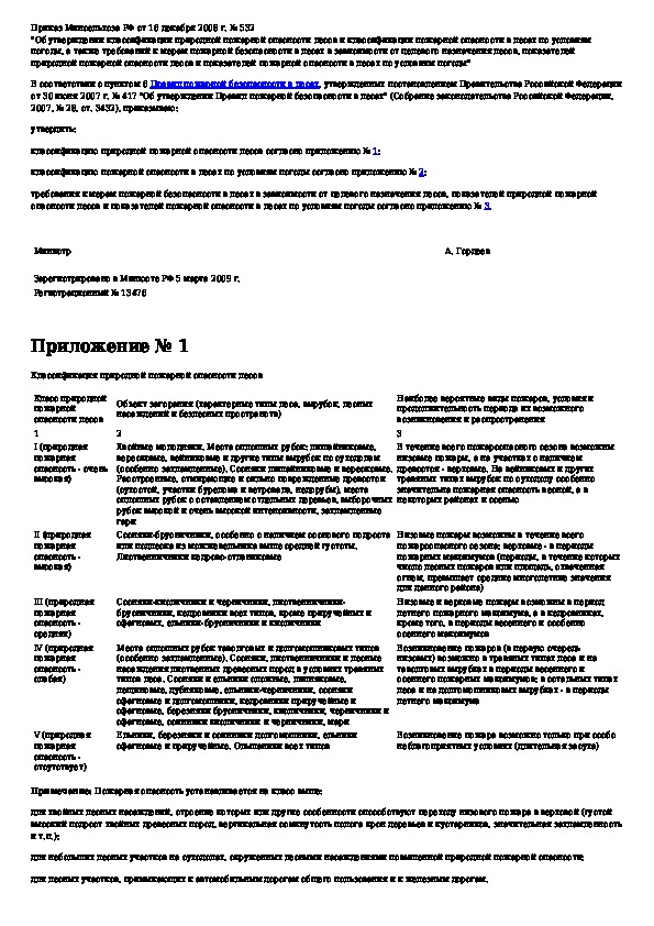 Приказ 532: Об утверждении классификации природной пожарной опасности лесов и классификации пожарной опасности в лесах по условиям погоды, а