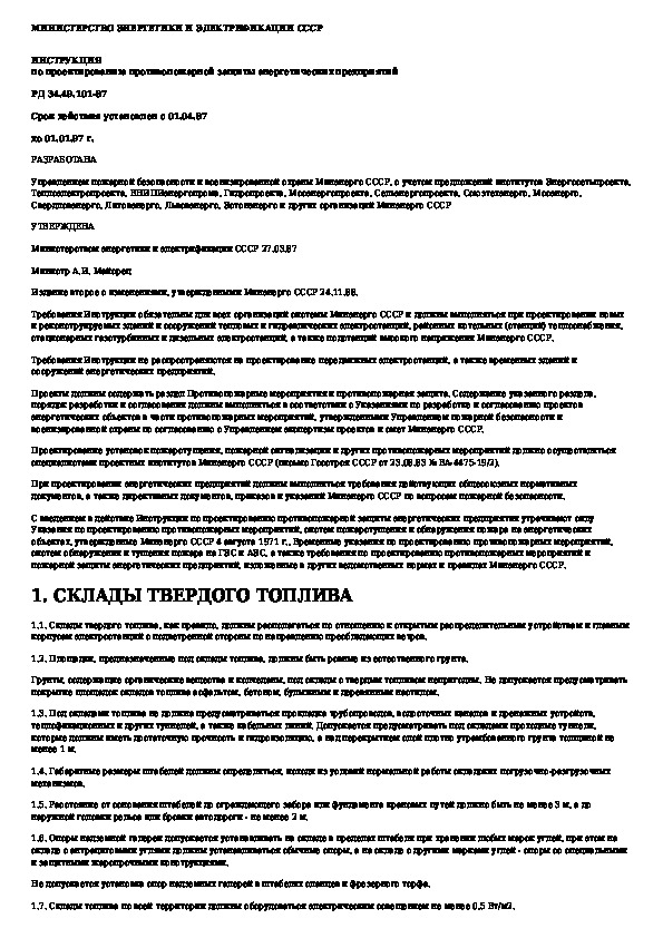 Инструкция по проектированию противопожарной защиты энергетических предприятий