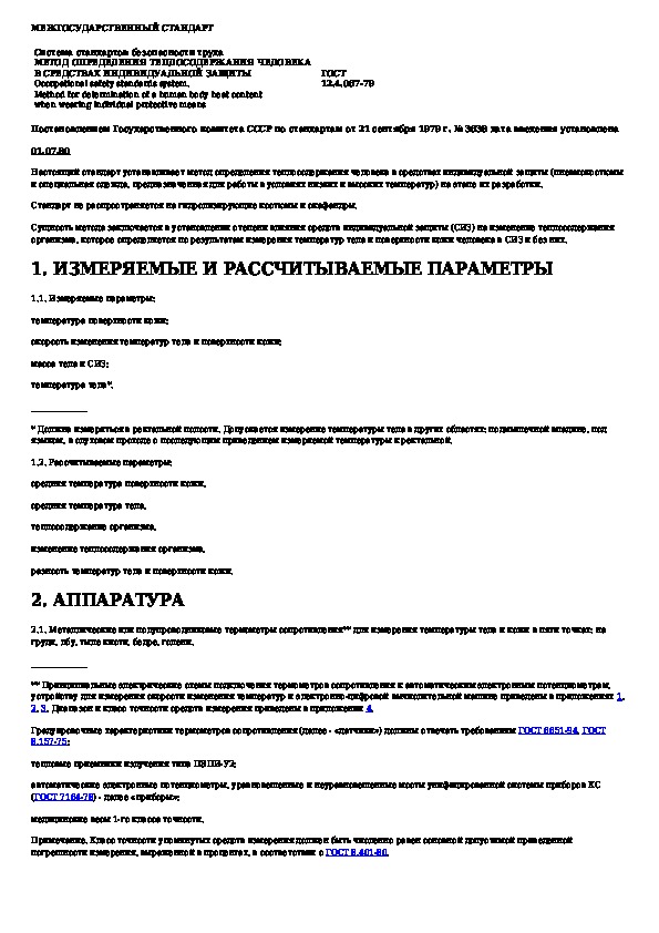 ГОСТ 12.4.067-79: Система стандартов безопасности труда. Метод определения теплосодержания человека в средствах индивидуальной защиты