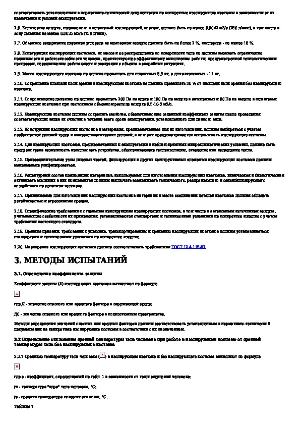 Система стандартов безопасности труда. Костюмы изолирующие. Общие технические требования и методы испытаний