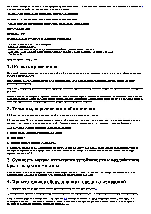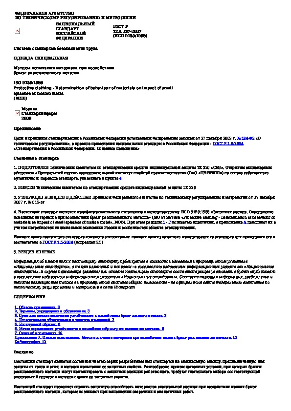Наша цель состоит в том, чтобы предоставить вам быстрый доступ к содержанию документа Система стандартов безопасности труда. Одежда специальная. Методы испытания материала при воздействии брызг расплавленного мета.