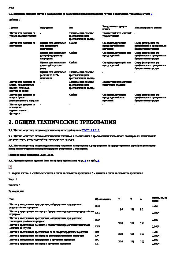 Система стандартов безопасности труда. Щитки защитные лицевые. Общие технические требования и методы контроля