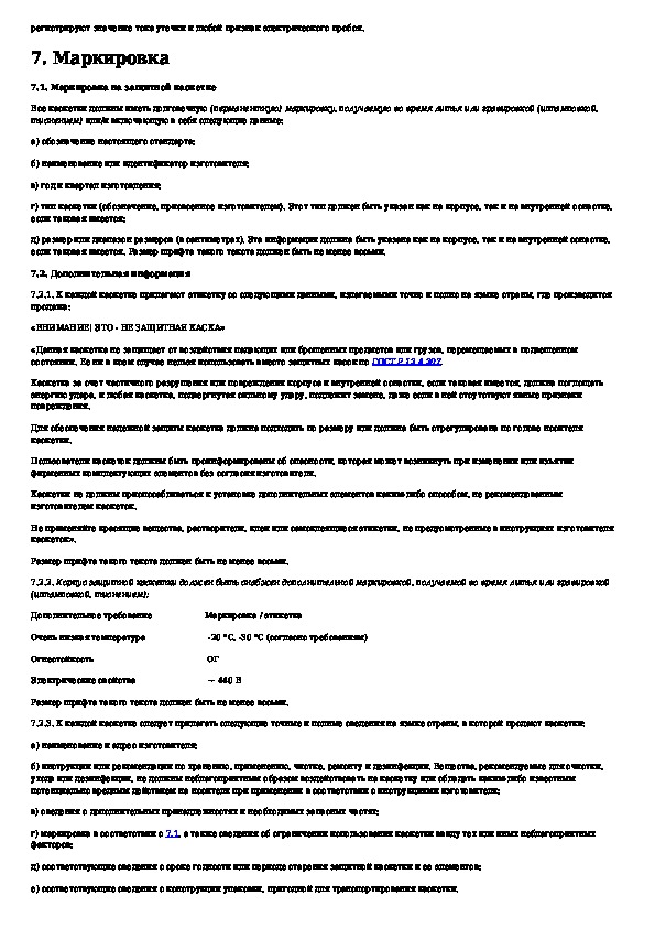 Система стандартов безопасности труда. Каскетки защитные. Общие технические требования. Методы испытаний