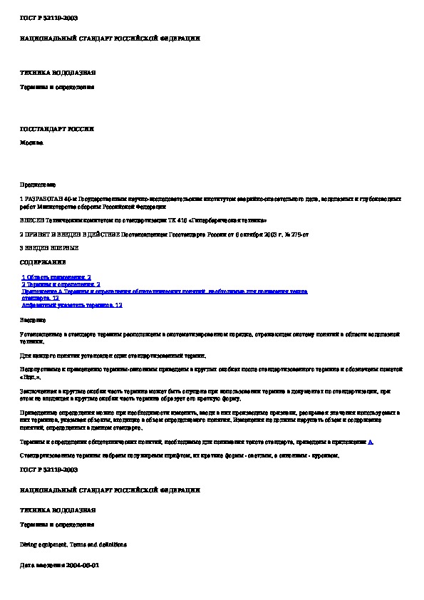 ГОСТ Р 52119-2003: Техника водолазная. Термины и определения