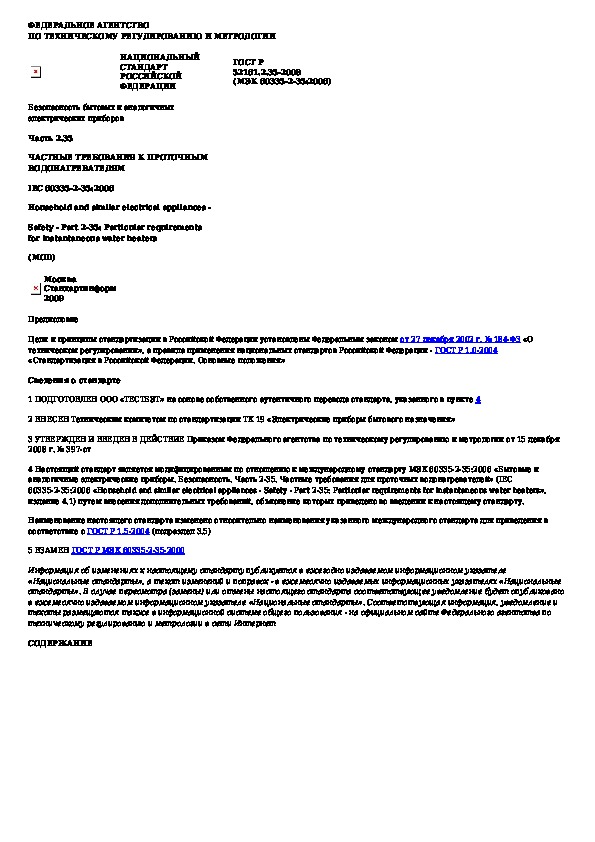 Наша цель состоит в том, чтобы предоставить вам быстрый доступ к содержанию документа Безопасность бытовых и аналогичных электрических приборов. Часть 2.35. Частные требования к проточным водонагревателям.