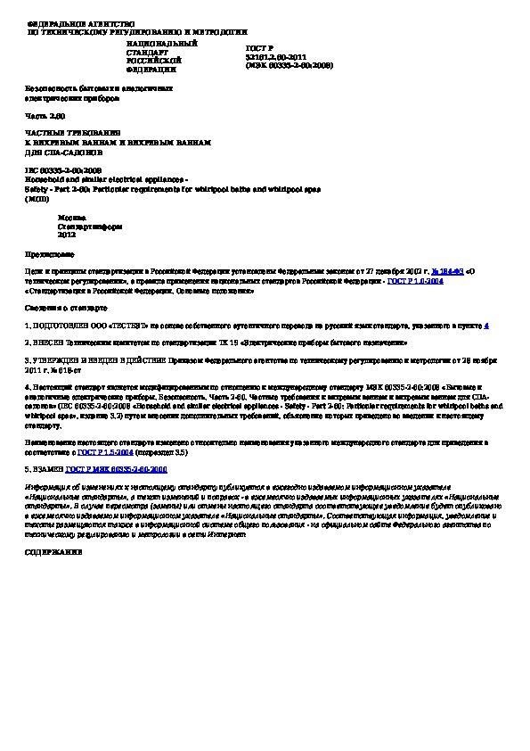 Наша цель состоит в том, чтобы предоставить вам быстрый доступ к содержанию документа Безопасность бытовых и аналогичных электрических приборов. Часть 2.60. Частные требования к вихревым ваннам и вихревым ваннам для С.