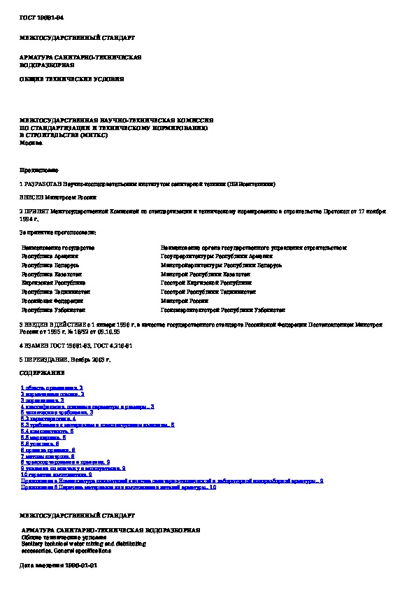 Наша цель состоит в том, чтобы предоставить вам быстрый доступ к содержанию документа Арматура санитарно-техническая водоразборная. Общие технические условия.