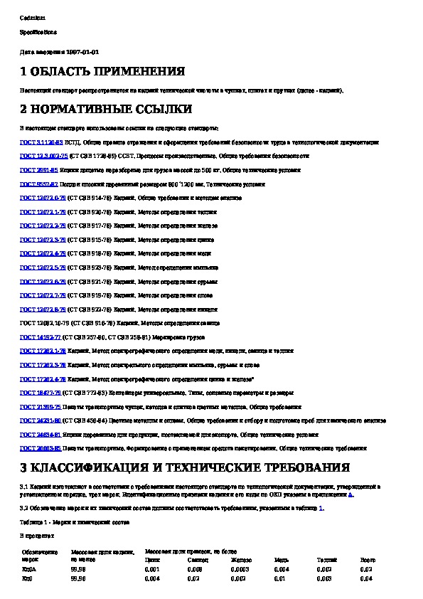 Наша цель состоит в том, чтобы предоставить вам быстрый доступ к содержанию документа Кадмий. Технические условия.