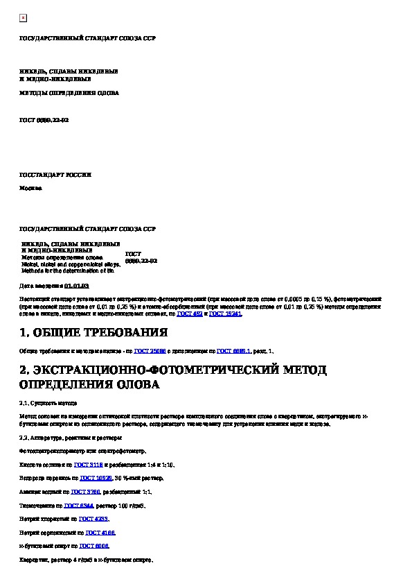 ГОСТ 6689.22-92: Никель, сплавы никелевые и медно-никелевые. Методы определения олова