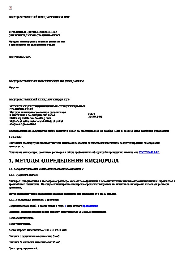 Наша цель состоит в том, чтобы предоставить вам быстрый доступ к содержанию документа Установки дистилляционные опреснительные стационарные. Методы химического анализа соленых вод и дистиллята на содержание газов.