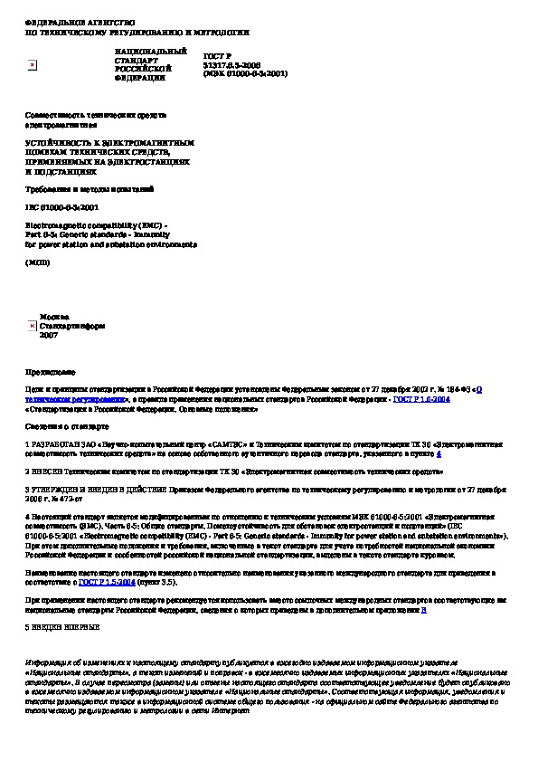 Наша цель состоит в том, чтобы предоставить вам быстрый доступ к содержанию документа Совместимость технических средств электромагнитная. Устойчивость к электромагнитным помехам технических средств, применяемых н.
