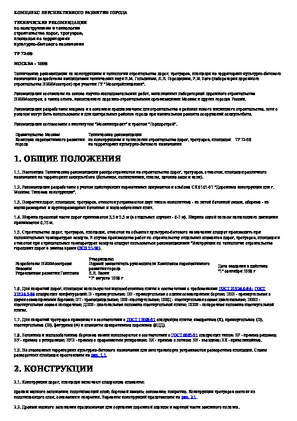 Наша цель состоит в том, чтобы предоставить вам быстрый доступ к содержанию документа Технические рекомендации по конструкциям и технологии строительства дорог, тротуаров, площадок на территориях культурно-бытовог.
