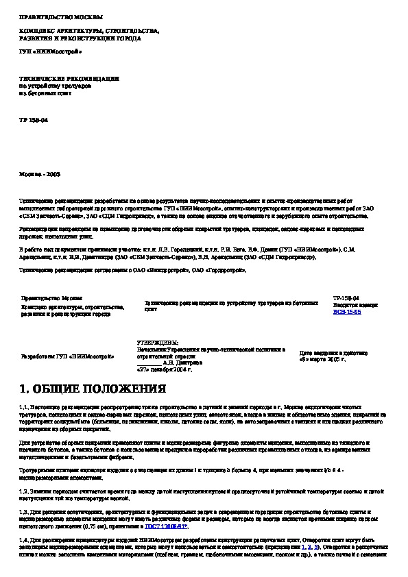 ТР 158-04: Технические рекомендации по устройству тротуаров из бетонных плит