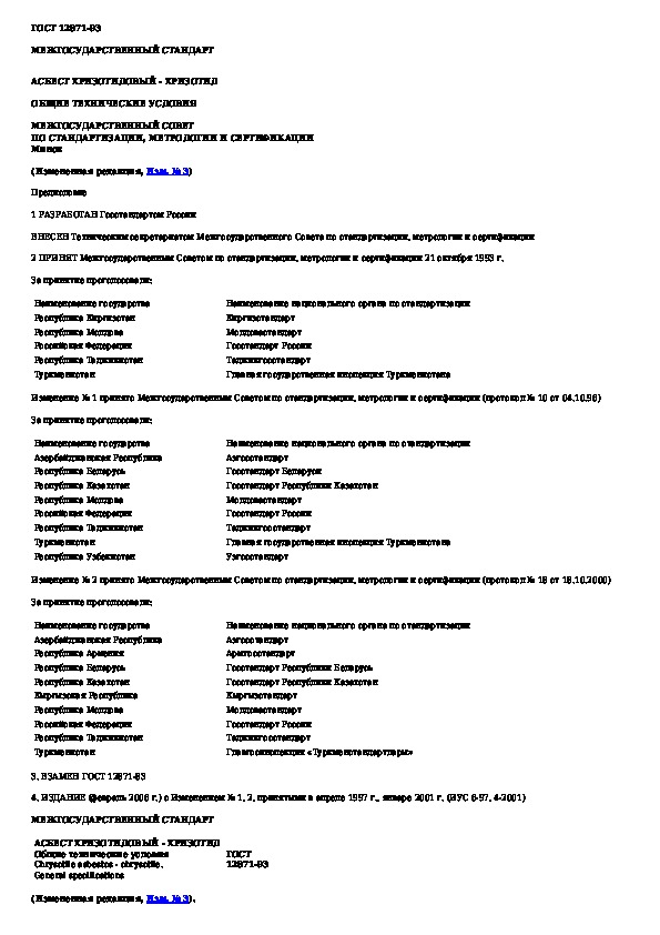 ГОСТ 12871-93: Асбест хризотиловый - хризотил. Общие технические условия