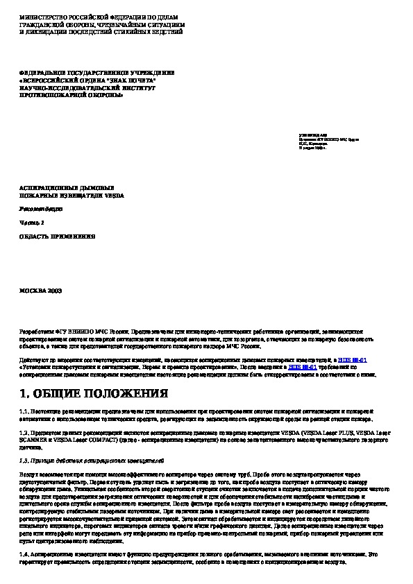 Наша цель состоит в том, чтобы предоставить вам быстрый доступ к содержанию документа Аспирационные дымовые пожарные извещатели VESDA. Рекомендации. Часть 1. Область применения.