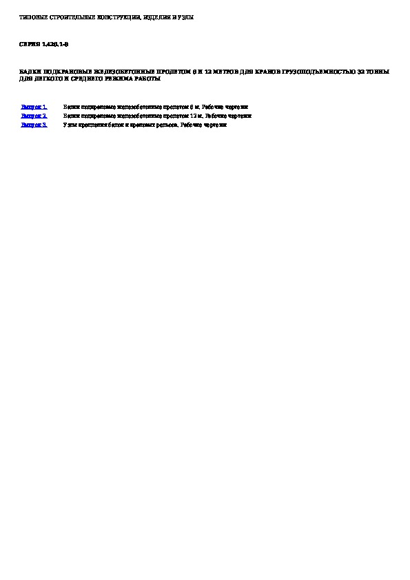 Наша цель состоит в том, чтобы предоставить вам быстрый доступ к содержанию документа Балки подкрановые железобетонные пролетом 6 и 12 метров для кранов грузоподъемностью 32 тонны для легкого и среднего режима работы.