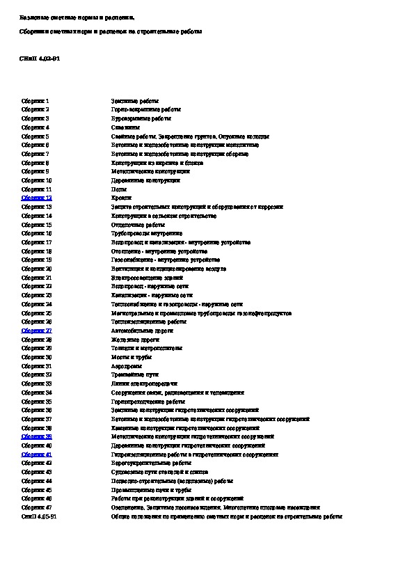 СНиП 4.02-91: Базисные сметные нормы и расценки. Сборники сметных норм и расценок на строительные работы